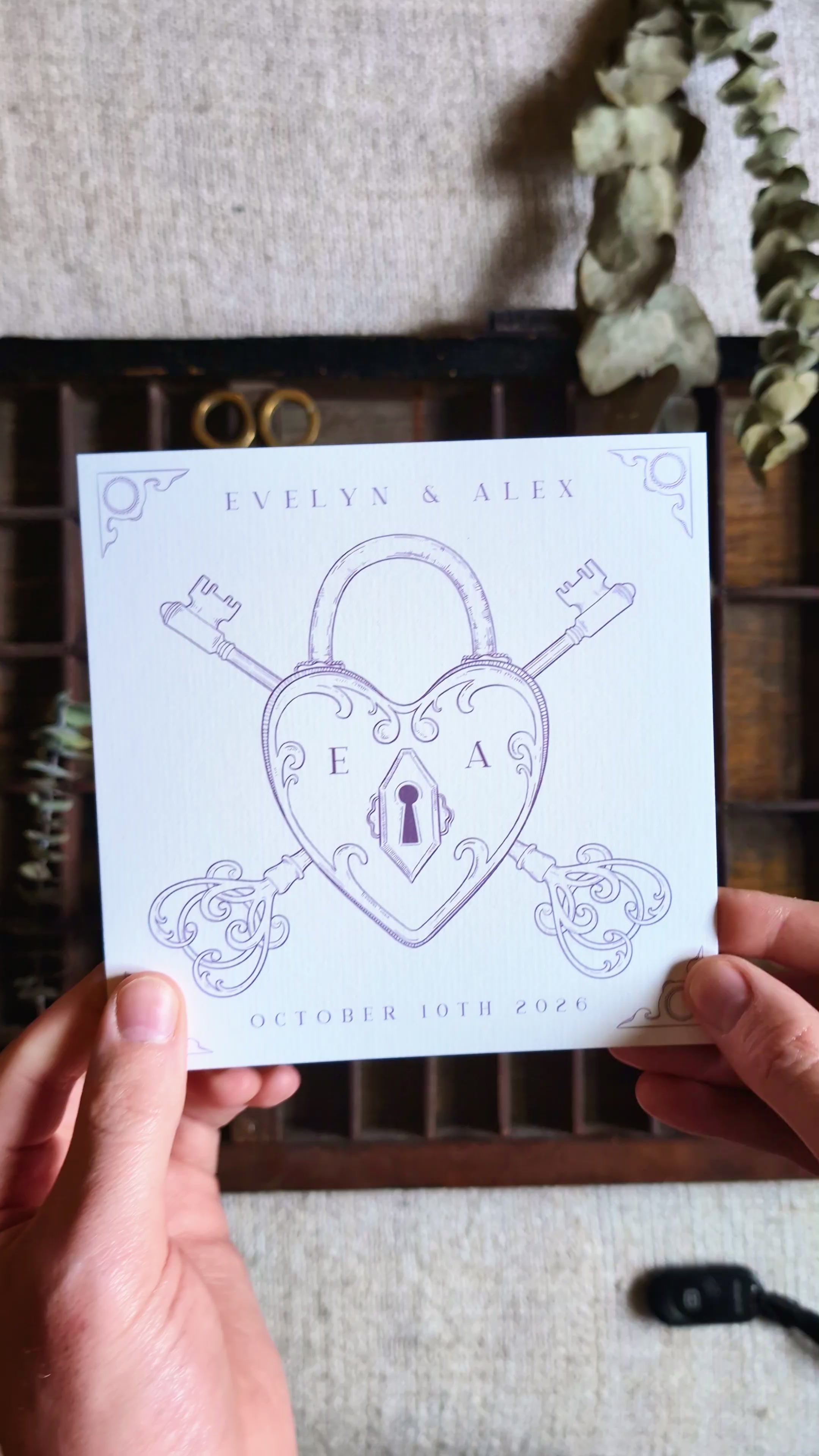 With its meaningful symbolism and classic elegance, ‘Lock & Key’ is the perfect motif for vintage, rustic, or industrial-chic weddings. Order now to share your wedding date with a design that celebrates the moment you and your partner unlock a lifetime together.
