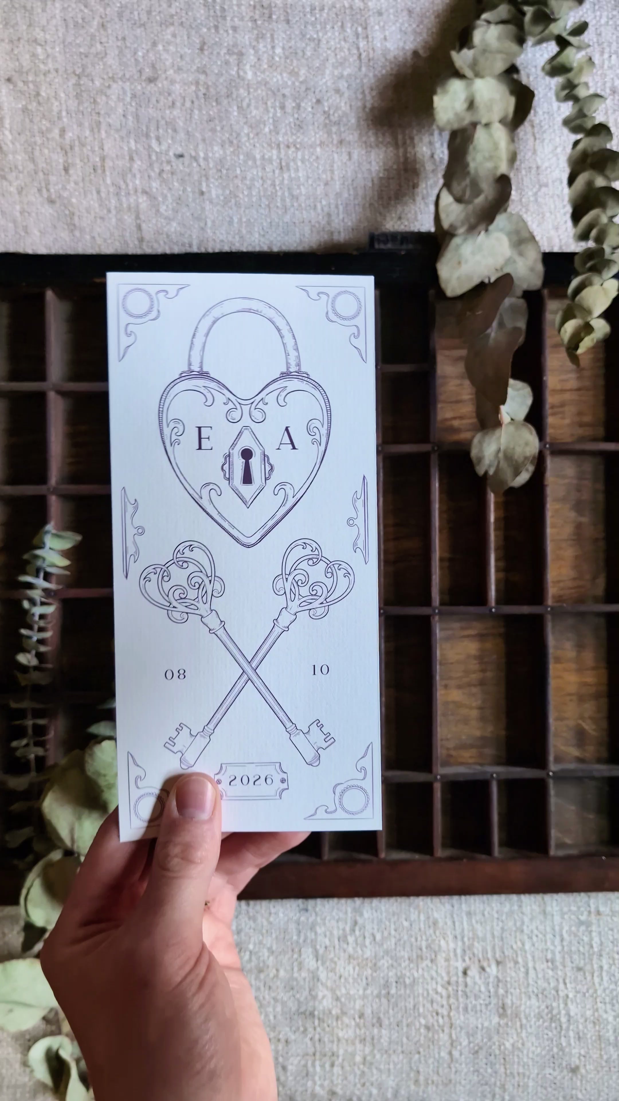 With its meaningful symbolism and classic elegance, ‘Lock & Key’ is the perfect motif for vintage, rustic, or industrial-chic weddings. Order now to share your wedding date with a design that celebrates the moment you and your partner unlock a lifetime together.